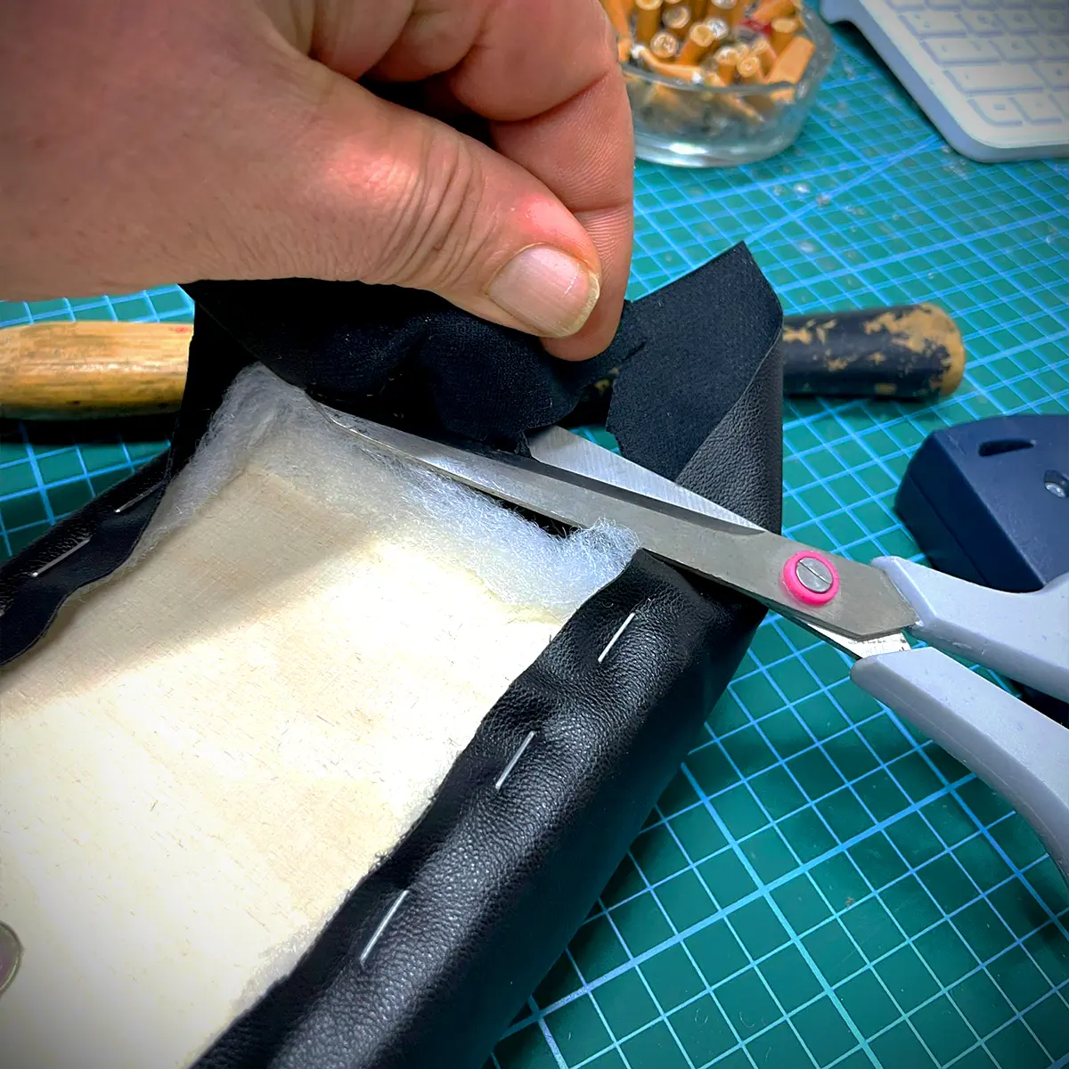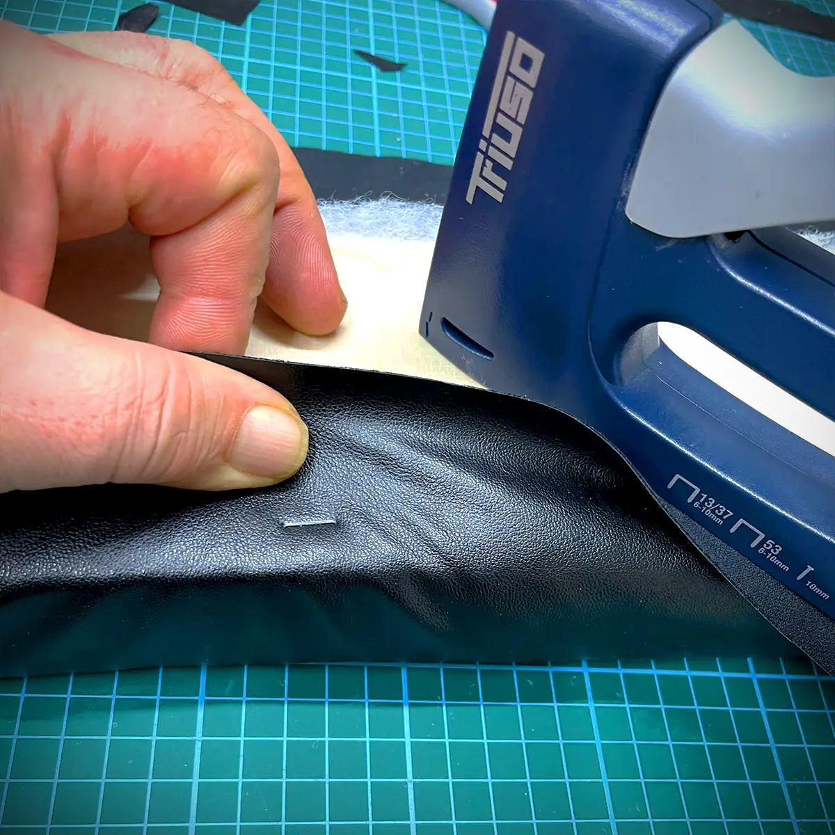 Ich muss immer die Tackernadeln noch mal mit dem Hammer richtig einschlagen. Vielleicht ist mein Tacker zu schwach oder es liegt daran, dass der Schaumstoff die Energie beim Tackern "abfängt"
