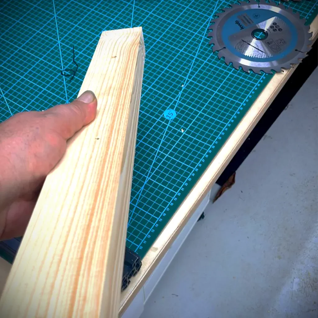 Nun habe ich die Schenkel auf Länge geschnitten. Das Anzeichnen war irgendwie schwieriger als erwartet, weil die Mitte des Kreuzes irgendwie blöd auszumachen war. Aber es hat geklappt.