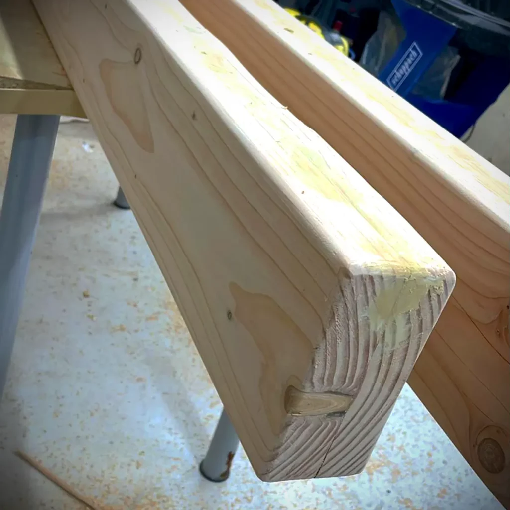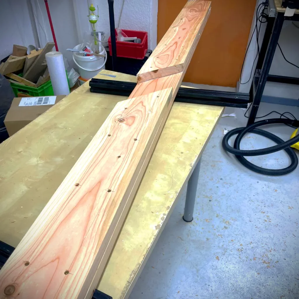 Das Einzige, was mir von Anfang an klar war, war, wie ich es umsetze: zwei Bohlen übereinaderschrauben und die fehlenden Teile durch schräg geschnittene Passstücke ausgleichen. Na dann mal los!