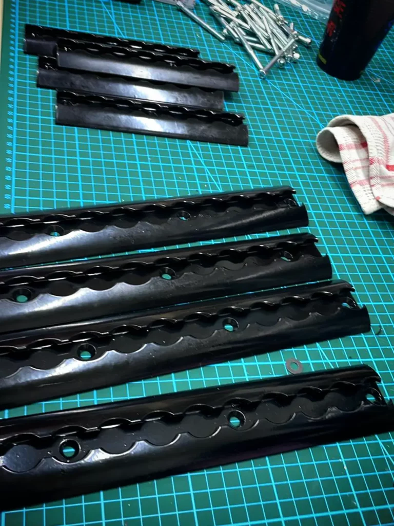 Als dann die Teile wieder im Regal lagen, war ich vom Ergebnis doch einigermaßen angetan. Oh Wunder – alles sieht sehr gleichmäßig schwarz aus – genau wie meine Hände, die Schuhe und das Shirt. Farbe trifft auf Peter… normal.