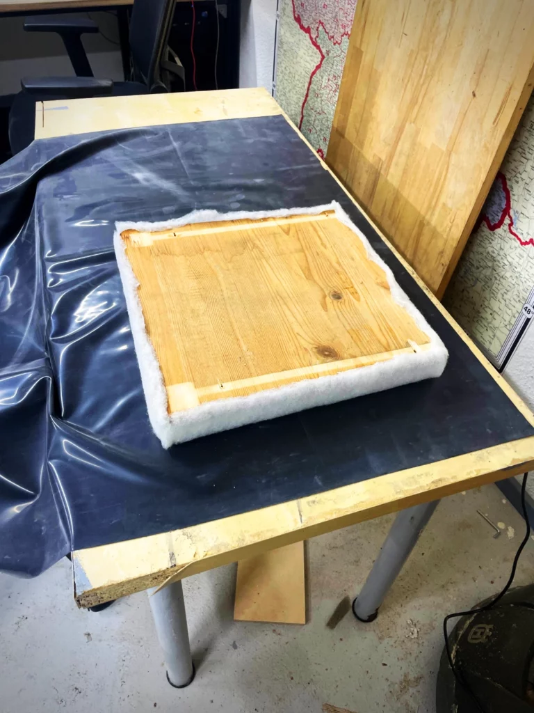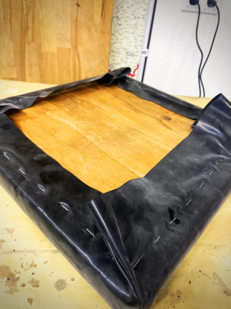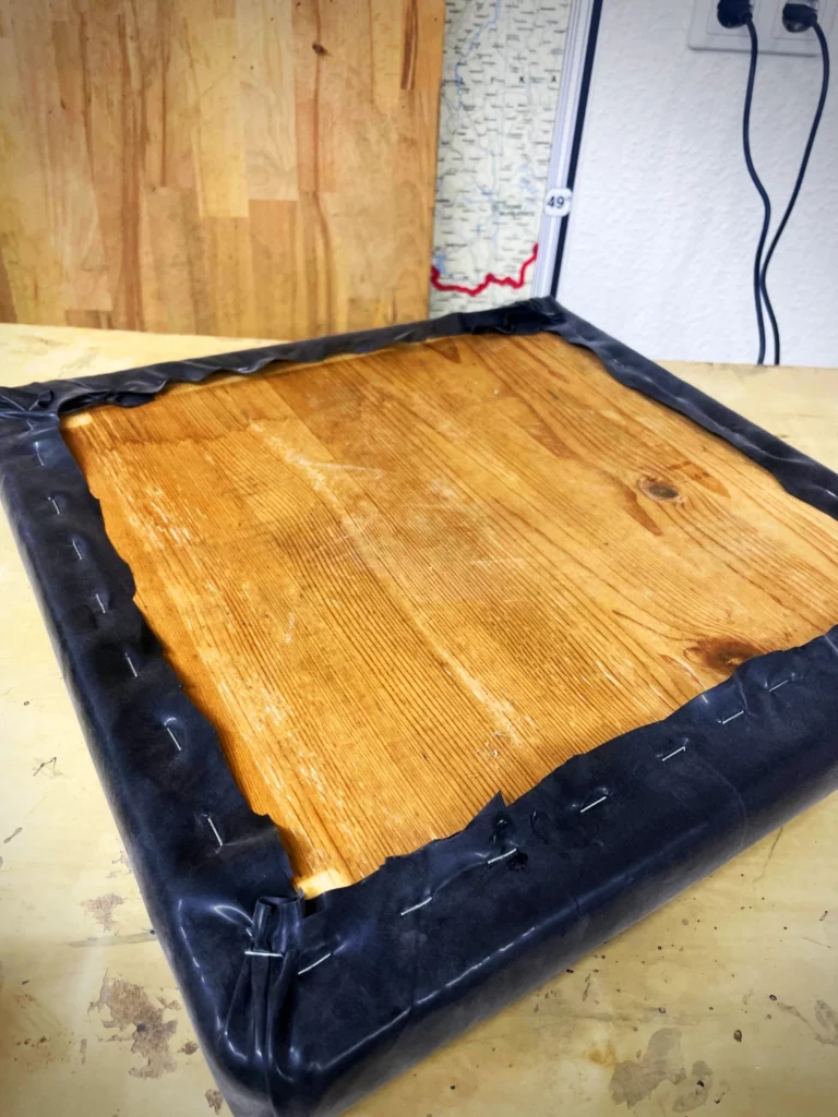 Das Lustige ist, ich habe grad mit Rubber Queen Marie gechattet und sie gefragt, welches Material ich für das Polster nehmen soll: Leder…. Lackstoff… Aber bevor ich mit schreiben fertig war, kam schon „LATEX!“. Also gut – Frauen widerspricht man nicht, wenn man Bock auf Weltfrieden hat. Also Marie… NUR FÜR DICH, okay?